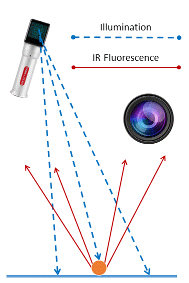 fpNatural 1 is stimulated using ‘visible’ illumination in the blue or red wavebands and emits ‘invisible’ infrared fluorescence.
